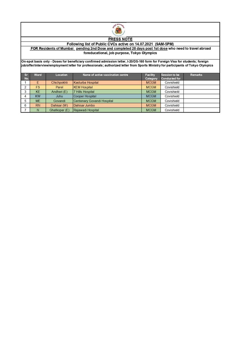Mumbai Bmc Shares List Of Covid 19 Vaccination Centres Administering Covidshield Covaxin On July 14 Check Full List Here Mumbai News Times Of India
